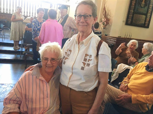 Op een nabijgelegen terrasje waar wij neerstreken, kwamen wij al de eerste NVOC-leden tegen en dat aantal zou nog aangroeien tot bijna de helft van de toehoorders bij het concert. Maar wij waren niet voor deze reünie van clubleden, hoe gezellig ook, gekomen maar voor dit concert.